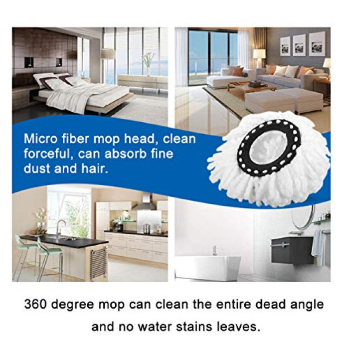 Spin Mop Head Replacement 5-Pack, Microfiber Refill Heads Universal for 360 Spin Magic Mopping, Round Shape Standard Size Product includes: 5pcs microfiber mop heads There is no need to get your hands dirty, no need for physical effort and no need for a power socket. It's so easy to use that even children can master it. Mop heads is easy to install, elastic buckles in both sides, easy to wash. End of mop pole is open whole, convenient suspension, non-slip Micro fiber mop head, clean forceful, can absorb fine dust and hair, 360 degree mop can clean the entire dead angle and no water stains leaves.