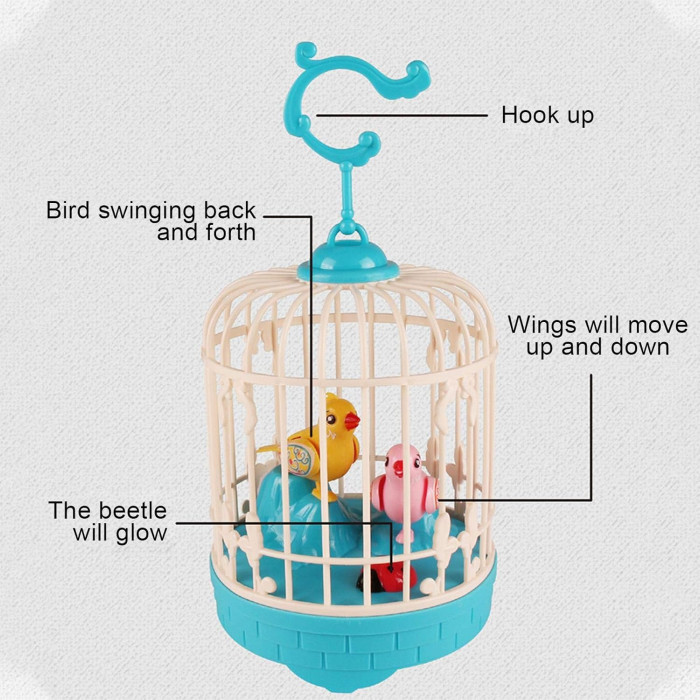 • Singing & Chirping Bird in a Cage, Sounds Caged Bird Toy for Toddler, Easter Gifts for Kids, Blue