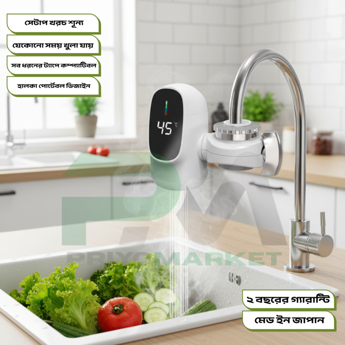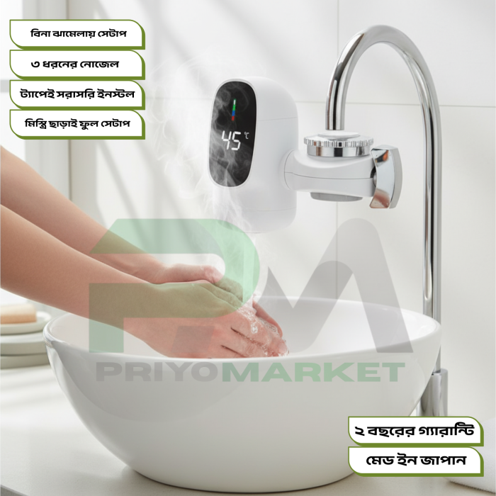 শীতকালে বাসায় গরম পানি পাওয়া সবচেয়ে বড় ঝামেলাগুলোর একটি। একটু গরম পানি পেতে বারবার পানি গরম করার ঝামেলা, সময় নষ্ট, বিদ্যুৎ খরচ—সব মিলিয়ে বিরক্তিকর। এই সমস্যার সহজ, সাশ্রয়ী এবং স্মার্ট সমাধান হচ্ছে— জাপানি ইনস্ট্যান্ট ইলেকট্রিক হট ওয়াটার ট্যাপ যেখানে ট্যাপ অন করলেই মাত্র ৩ সেকেন্ডে গরম পানি বের হবে—একদম সঙ্গে সঙ্গেই! আর এই ট্যাপ লাগাতে সময় লাগবে মাত্র ৫ মিনিট — মিস্ত্রি লাগবে না, আপনি নিজেই ট্যাপ লাগাতে পারবেন। পানির তাপমাত্রা আপনার দরকার অনুযায়ী আপনি নিয়ন্ত্রণ করতে পারবেন।