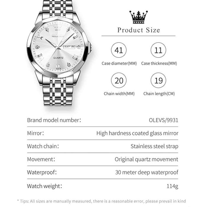 • Business Dress Men Watches: Big face watch for men with a day date. diamond Roman indexes, easy to read, classic business style, stand the test of time, handsome and outstanding.