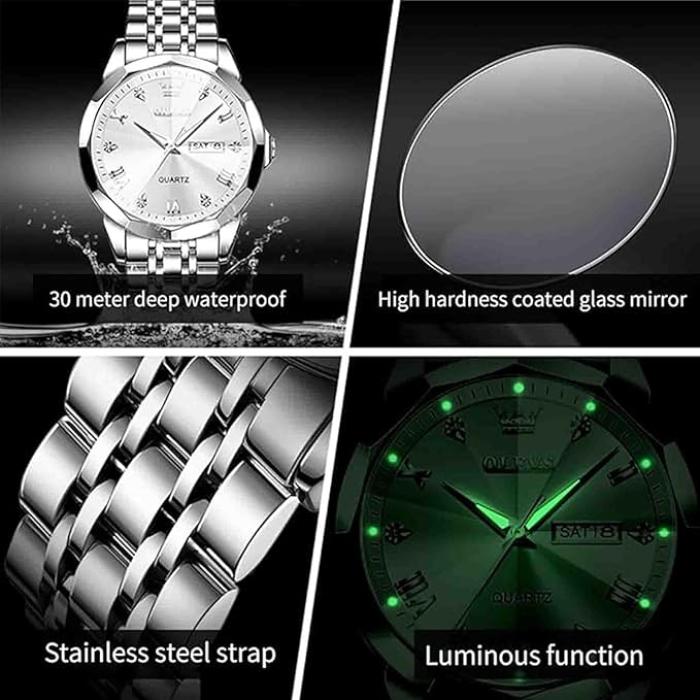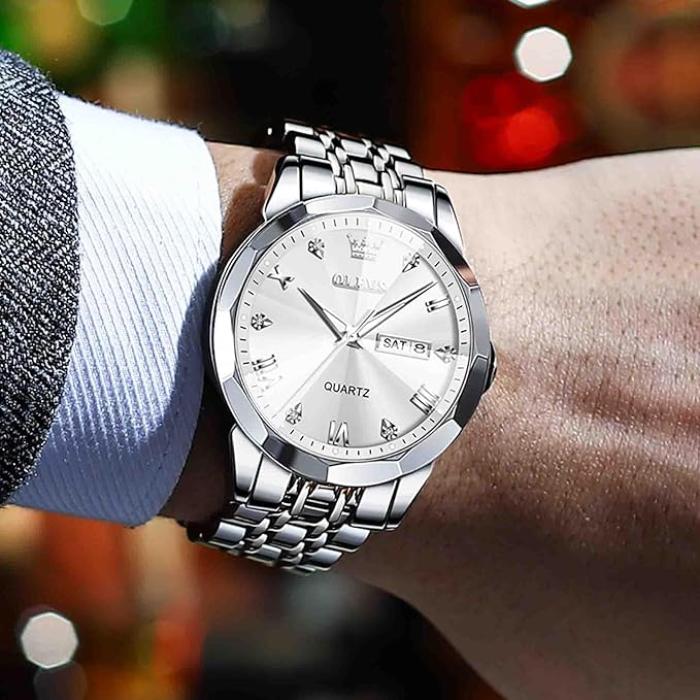 Olevs 9931 Luxury Fashion Stainless Steel Imported Quartz Movement Waterproof Wrist Watch For Men Silver